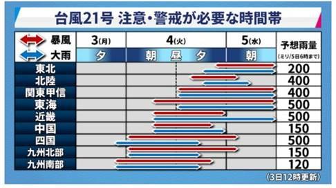 ¸½ºßÈó¾ï¤Ë¶¯¤¤ÂæÉ÷Â裲£±¹æ¤Ï¡¢£³Æü£±£²»þ¤Ë¤ÏÆîÂçÅìÅç¤ÎËÌÅìÌó£²£°£°km¤Ë¤¢¤Ã¤Æ¡¢ËÌÀ¾¤ØËè»þ£²£°km¤Ç¿Ê¤ó¤Ç¤¤¤Þ¤¹¡£