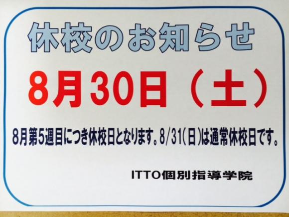 8·î30Æü(Åڡˤϡصٹ»Æü¡Ù¤È¤Ê¤ê¤Þ¤¹¡ª¡¡¡¡¡¡¡¡¡¡¡Ê¡¡¶µ¼¼¤«¤é¤Î¤ªÃΤ餻¡¡¡Ë