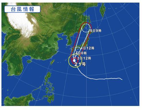 ¸½ºßÈó¾ï¤Ë¶¯¤¤ÂæÉ÷Â裲£±¹æ¤Ï¡¢£³Æü£±£²»þ¤Ë¤ÏÆîÂçÅìÅç¤ÎËÌÅìÌó£²£°£°km¤Ë¤¢¤Ã¤Æ¡¢ËÌÀ¾¤ØËè»þ£²£°km¤Ç¿Ê¤ó¤Ç¤¤¤Þ¤¹¡£