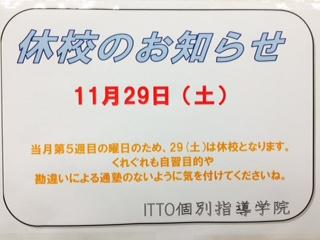 ¡ù11/29(Åڡˤϡصٹ»Æü¡Ù¤Ë¤Ê¤ê¤Þ¤¹¡ù¡¡¡¡¡¡¡¡¡¡¡Ê¡¡¶µ¼¼¤«¤é¤Î¤ªÃΤ餻¡¡¡Ë